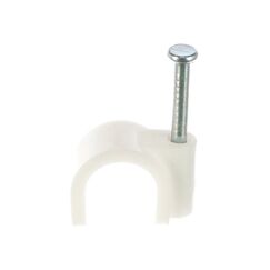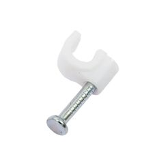Крепежные скобы круглые 8 мм: прочный пластик, стальной гвоздь, быстро и удобно фиксируют кабель диаметром до 8 мм на любых поверхностях.