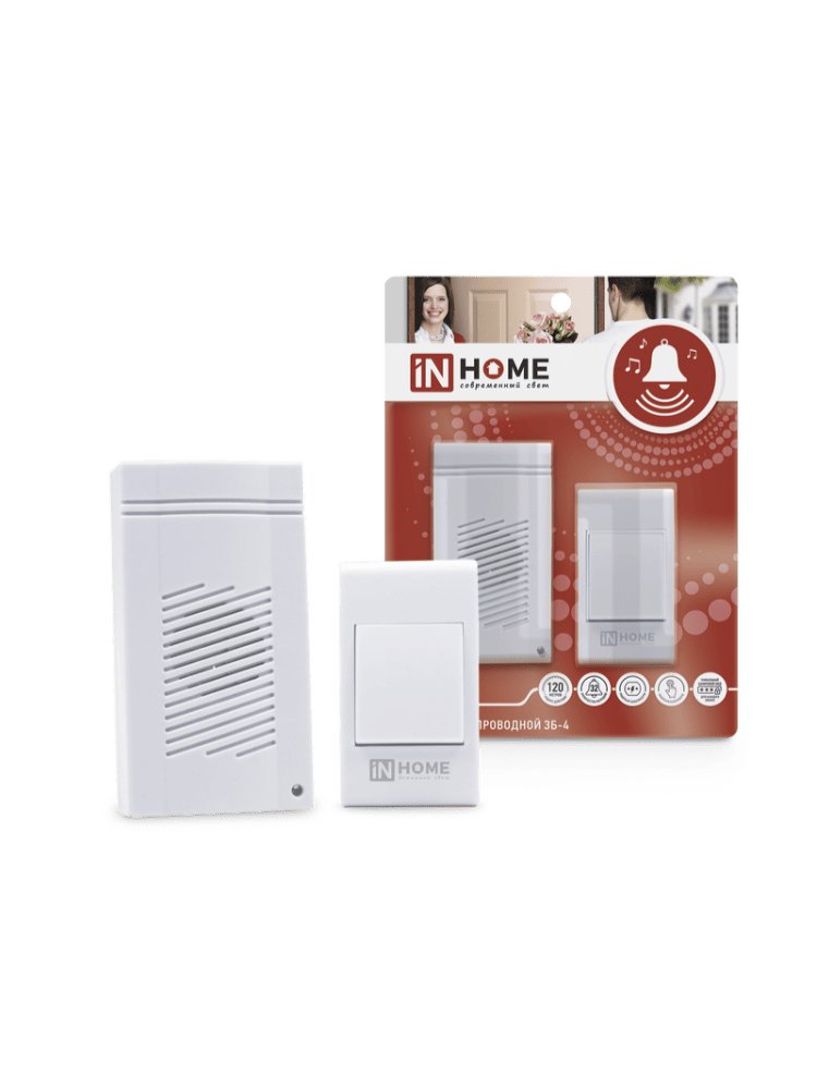 Звонок беспроводной ЗБ-4 32 мелодии 120м сетевой с цифр. кодир. с кнопкой БЕЛЫЙ IN HOME