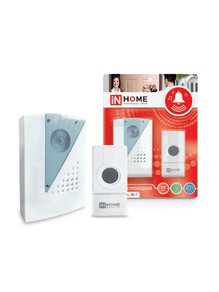 Звонок беспроводной ЗБ-7 32 мелодии 120м с цифр. кодир. с кнопкой IP44 БЕЛО-СЕРЫЙ IN HOME