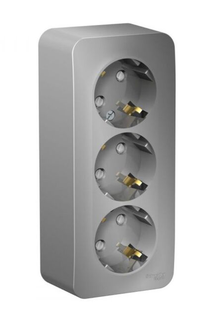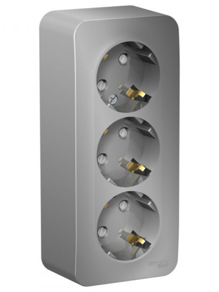 Трёхместная розетка с изолирующей пластиной и алюминиевой лицевой панелью обеспечивает безопасность и стиль в современном интерьере.