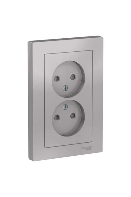 Розетка 2-постовая без з/к со шторками 16А моноблок, алюминий AtlasDesign SE в Солнечный