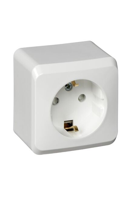 Розетка 1-постовая О/У с з/к со шторками 16А, белая Этюд SE в Солнечный