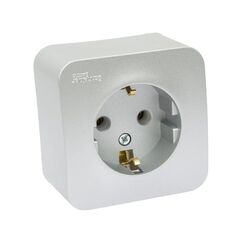 2-постовая накладная розетка с заземлением, изолирующей пластиной и алюминиевым покрытием для безопасного подключения электроприборов.