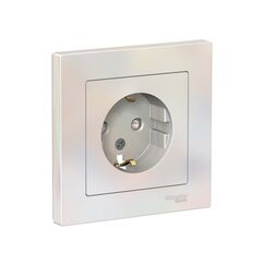 Безопасная розетка с заземлением, изолирующей пластиной и стильным алюминиевым дизайном, для надежных подключений дома и в офисе.
