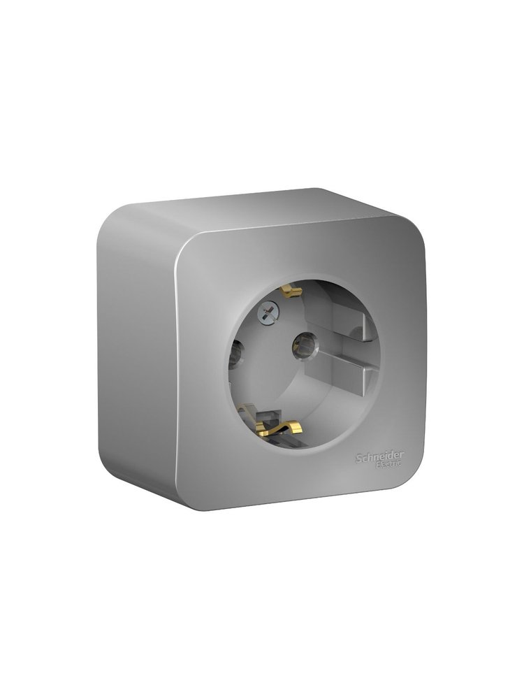 Безопасная розетка с заземлением, изолирующей пластиной и стильным алюминиевым дизайном, для надежных подключений дома и в офисе.