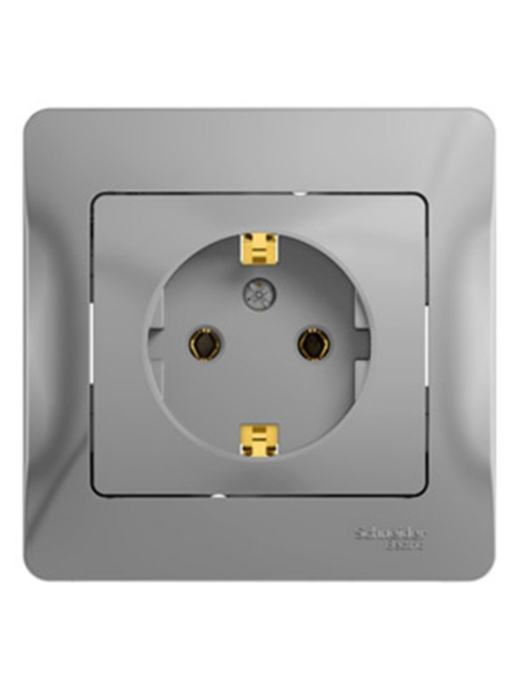 Розетка 1-постовая с з/к со шторками 16А моноблок, алюминий AtlasDesign SE в Солнечный