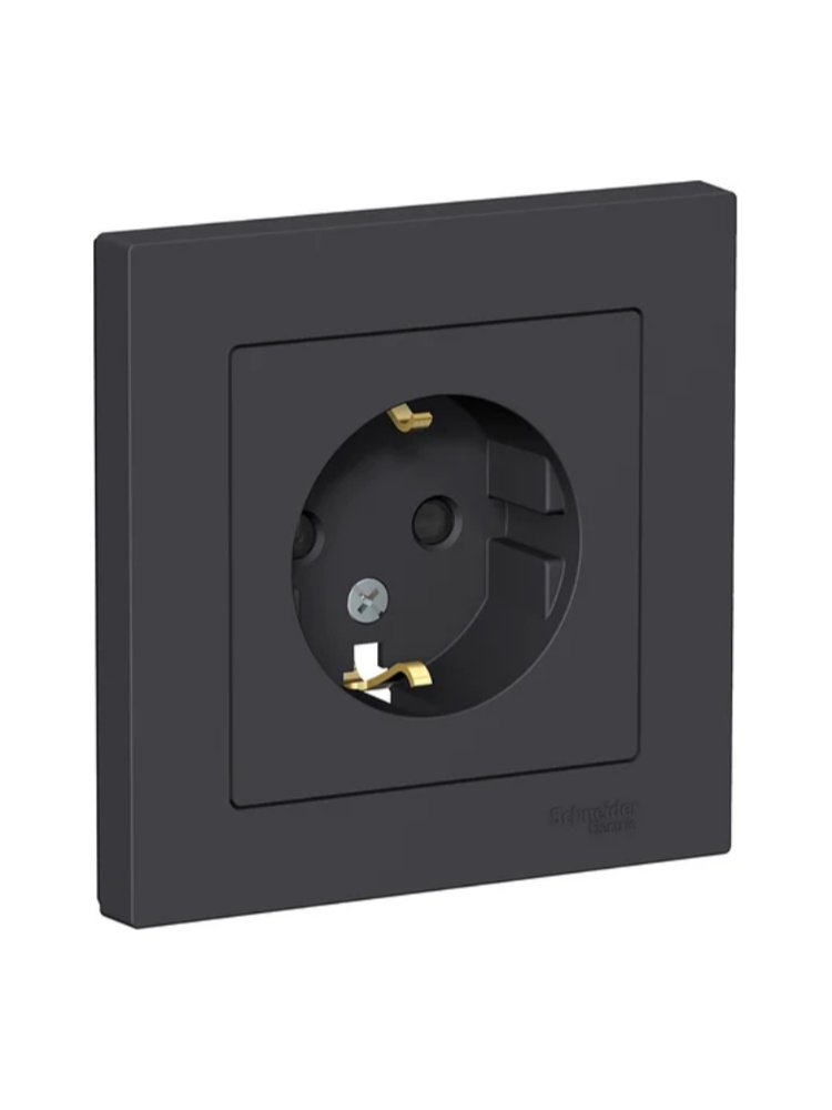 Розетка 1-постовая с з/к со шторками 16А моноблок, карбон AtlasDesign SE в Солнечный