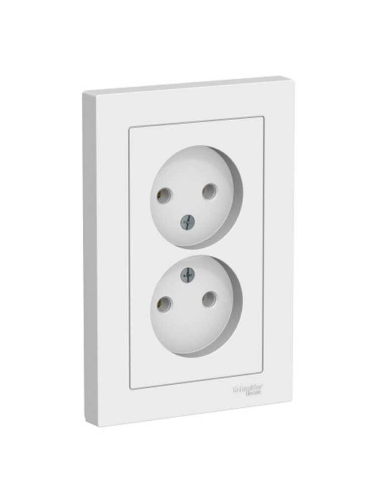 Розетка 2-постовая без з/к 16А моноблок, белая AtlasDesign SE