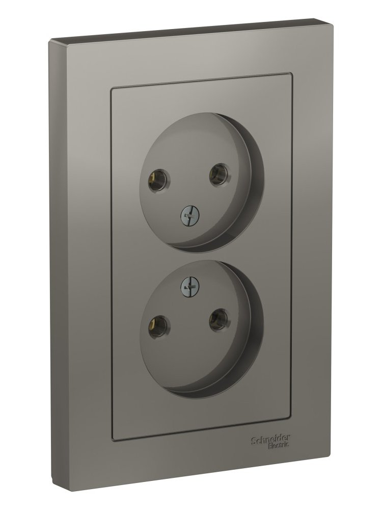 Двойная розетка 16А без з/к, надежный моноблок в цвете сталь, стильный дизайн, для жилых и коммерческих помещений, легкая установка, прочные материалы.