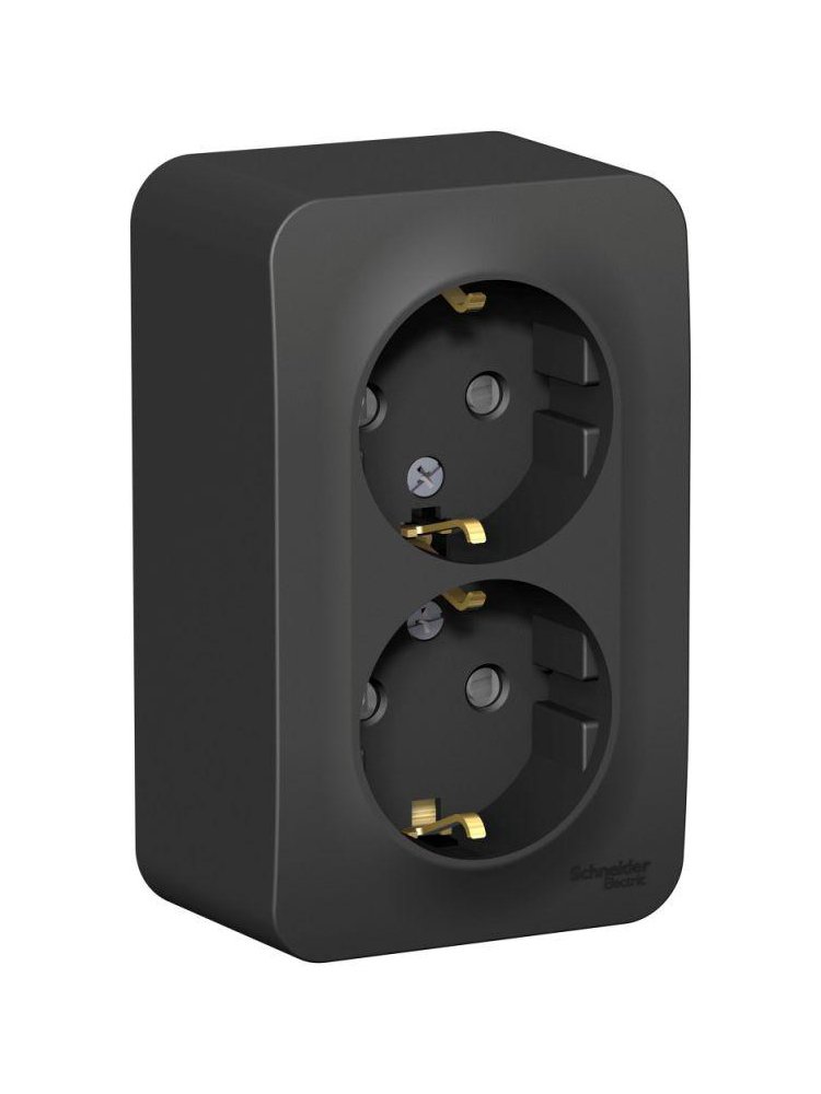 Двойная розетка с заземлением 16А, монтаж О/У, изолирующая пластина, стиль антрацит. Безопасная и удобная для бытовых и профессиональных помещений.