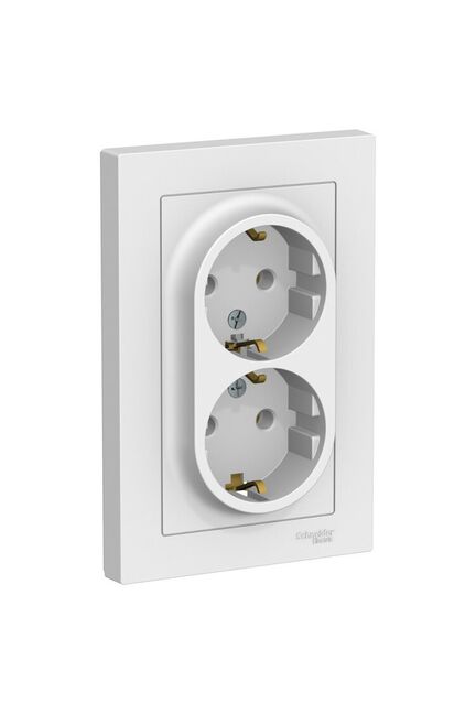 Розетка 2-постовая с з/к 16А моноблок, белая AtlasDesign SE в Солнечный