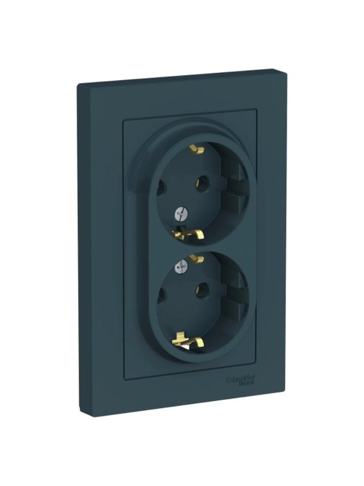 Двойная розетка с заземлением 16А, в изумрудном цвете, для скрытого монтажа. Безопасность, стиль и надежность для любых помещений.