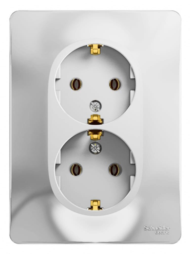 Двойная розетка 16А с заземлением и защитными шторками для безопасного использования в доме и офисе. Белая, простая в установке, надежная.
