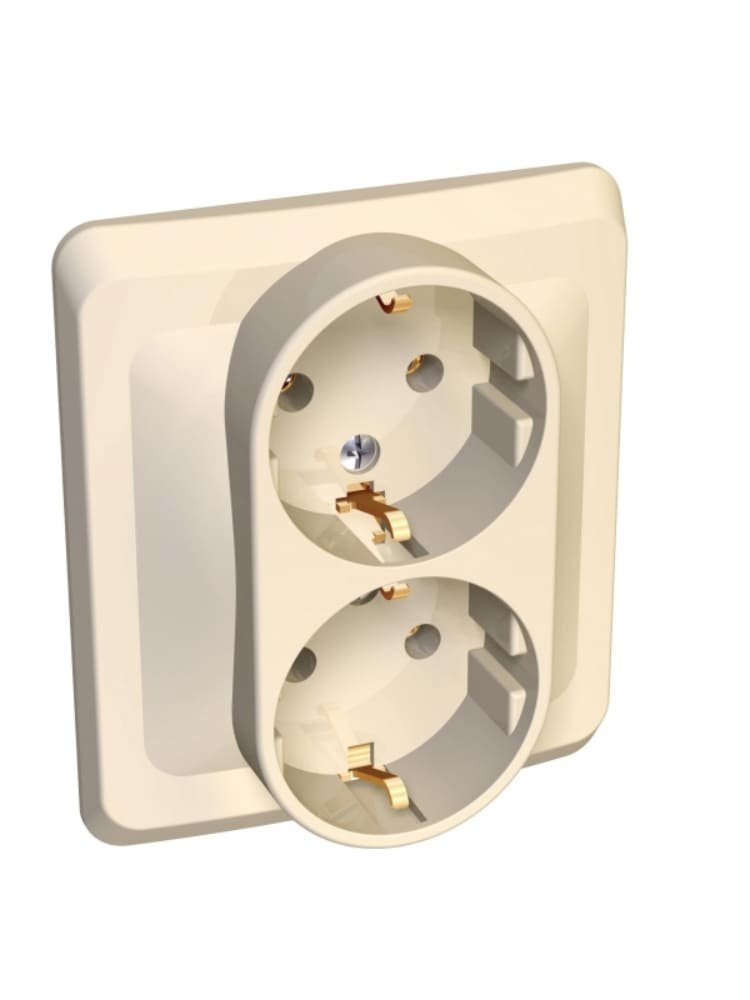 Надежное решение для вашего дома и офиса: двухместная розетка скрытого монтажа с заземлением 16А, выполненная в стильном кремовом цвете, обеспечивает безопасность и комфортную эксплуатацию современных электроприборов в жилых и коммерческих помещениях.