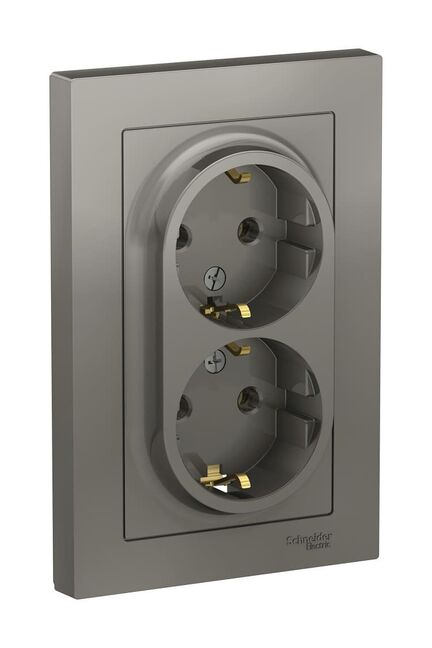 Розетка 2-постовая с з/к 16А моноблок, сталь AtlasDesign SE