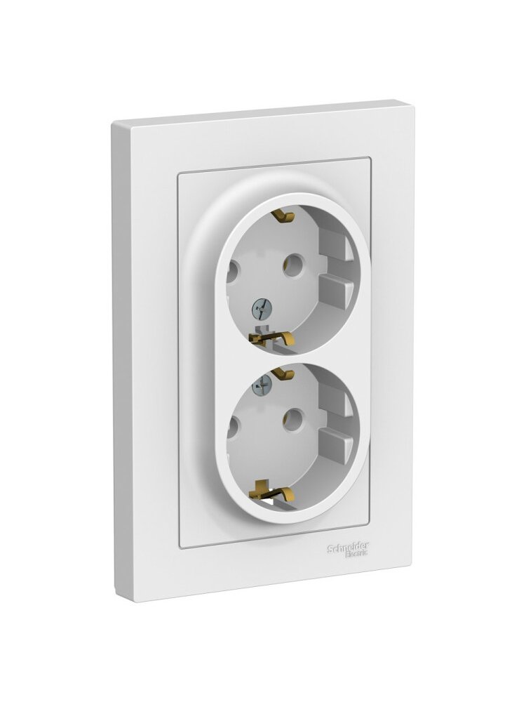 Розетка 2-постовая с з/к со шторками 16А моноблок, белая AtlasDesign SE в Солнечный