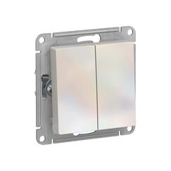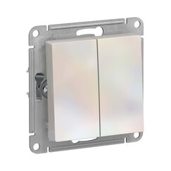 Двухклавишный выключатель моноблок, жемчуг, для управления двумя светильниками. Надежный, долговечный, стильный дизайн для дома и офиса.