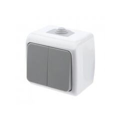 Влагозащищённый двухклавишный выключатель IP44 для наружного монтажа. Подходит для влажных помещений и улицы, удобен и надёжен.