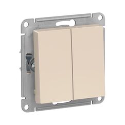 Двухклавишный моноблочный выключатель, бежевый, для управления двумя световыми зонами. Прочный пластик, удобный монтаж, современный дизайн.