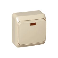 Одинарный выключатель с подсветкой, 10А, монтаж накладной, кремовый корпус — простая установка,  удобство поиска в темноте.