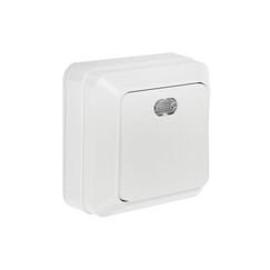 Полугерметичный, влагозащищенный, 1-клавишный, степень защиты IP44, для открытой установки, корпус из ударопрочного пластика.