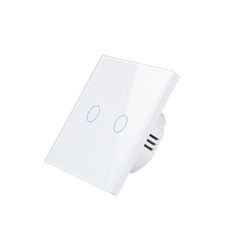Сенсорный 2-канальный выключатель с программируемыми режимами, белый цвет, элегантный дизайн и простая установка для комфортного управления светом.