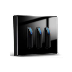 Три клавиши, управление светом с трёх мест, стильный черный корпус, прочный пластик, подходит для скрытой установки и современных интерьеров.