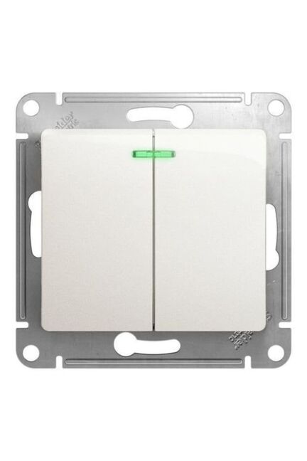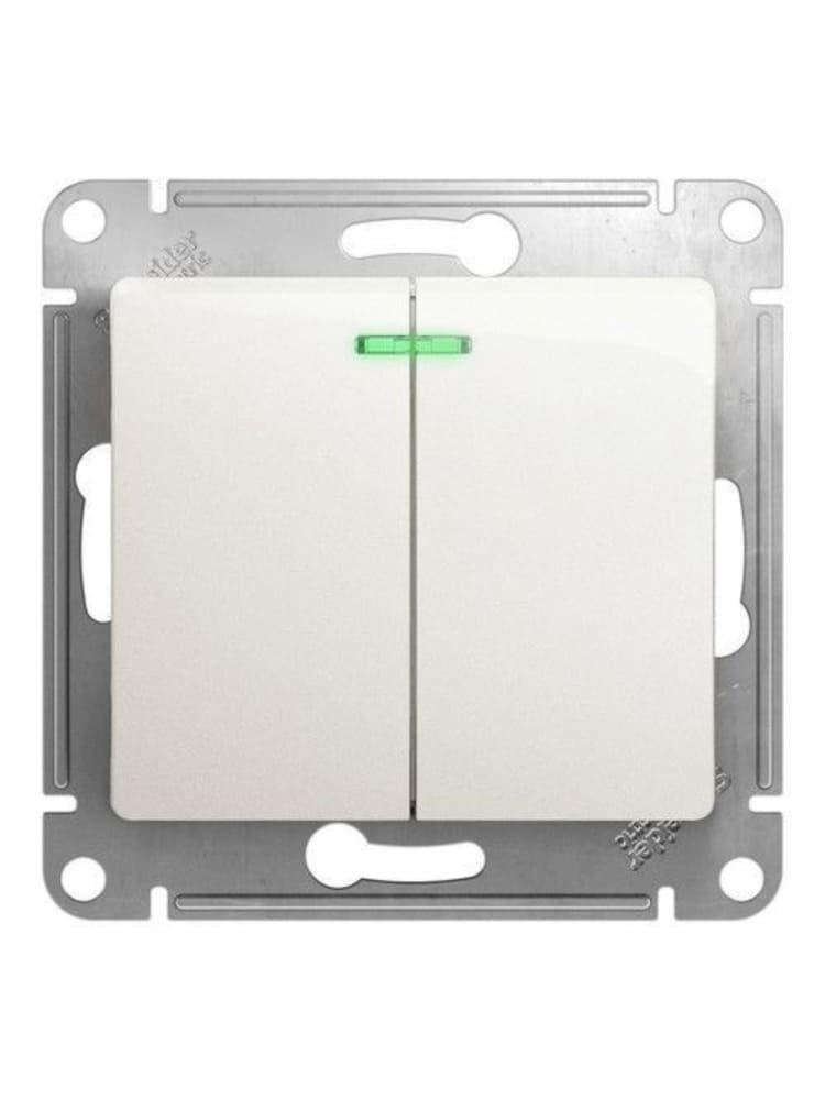 Выключатель 2-клавишный механизм, белый с подсветкой Glossa SE в Солнечный