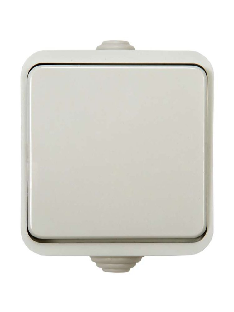 Полугерметичный, влагозащищенный, 1-клавишный, степень защиты IP44, для открытой установки, корпус из ударопрочного пластика.