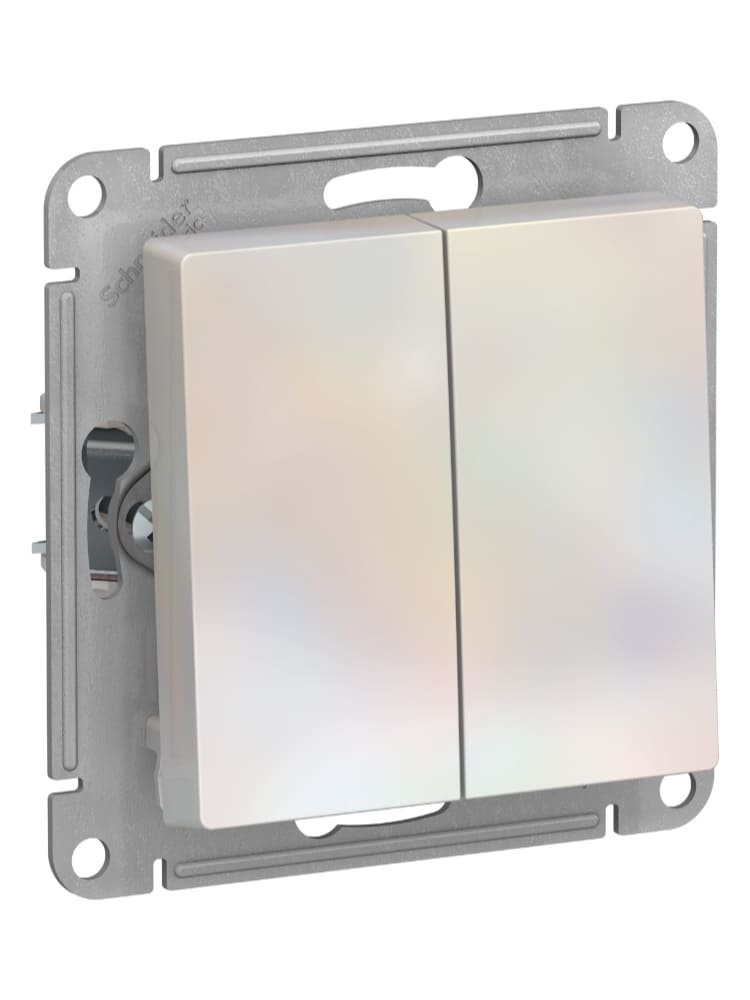 Элегантный жемчужный выключатель на две клавиши станет надежным элементом вашего интерьера — он подходит для жилых и коммерческих помещений, идеально управляет двумя группами освещения, сочетает износостойкость и современный дизайн.