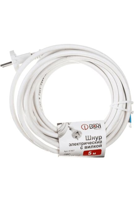 Шнур с вилкой 5м белый ПВС 2*0,75 в Солнечный