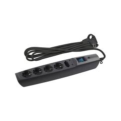 4 розетки с заземлением, 3 USB-порта, 1,5 м кабель, защита от перегрузки — для подключения и зарядки техники дома, в офисе или на стройке.