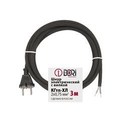 Удобный шнур 3 м с вилкой, сечение 2×0,75 мм², стойкая изоляция, безопасное подключение приборов в доме и на строительстве.