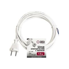 Гибкий медный шнур с вилкой 1,5 м, двойная изоляция ПВС 2×0,75 мм², оптимален для безопасного подключения бытовых приборов.