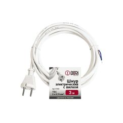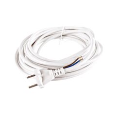 Трёхметровый кабель с вилкой, сечение 2х0,75 мм² ПВС, белый цвет. Идеален для подключения бытовых приборов и светильников.