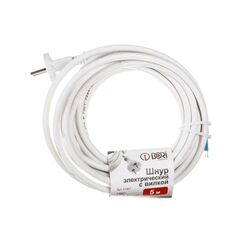 Шнур 5м, ПВС 2х0,75 мм², с вилкой, белый. Эластичный и прочный, подходит для домашних и строительных нужд, устойчив к излому и удобен в использовании.