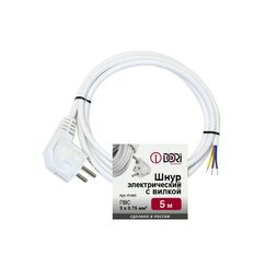 Белый шнур с вилкой 5 м, ПВС 3x0,75 мм² — для безопасного подключения электроинструментов и бытовых приборов. Устойчив к изгибам, надёжен и удобен.