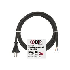 Надёжный гибкий шнур 2 м с евровилкой, с медными жилами 2×0,75 мм² для подключения бытовой техники и электроинструмента.