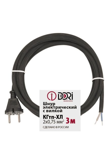 Шнур с вилкой 3м черный КГХЛ 2*0,75 в Солнечный