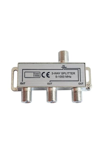 Надёжно делит ТВ-сигнал на 3 выхода, работает с частотами 5–1000 МГц, подходит для цифрового и аналогового телевидения, легко устанавливается.