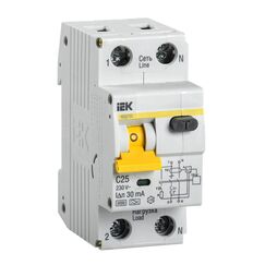 Надежная дифференциальная защита на 25А, 30мА для однофазных сетей, предотвращает утечки, перегрузки и короткие замыкания, простая установка.