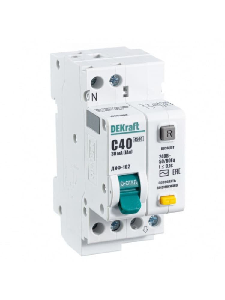 Автомат дифференциальный ДИФ-102 2P 40А 30мА DEKraft