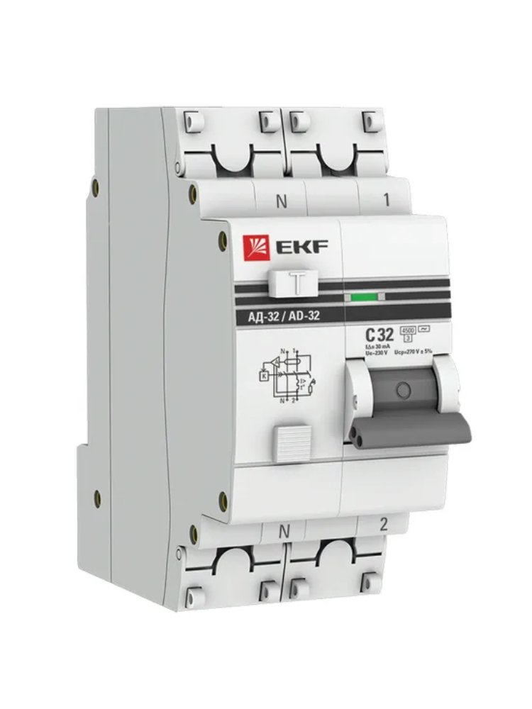 Автомат дифференциальный АД-32 1P+N 32А 30мА EKF PROxima для защиты от перегрузок. Надежный, простой в установке на DIN-рейку.