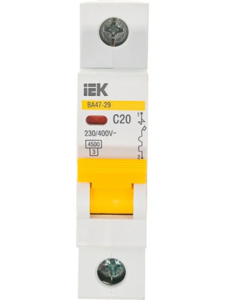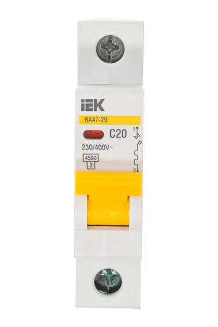 Однополюсный автоматический выключатель 20A (C), максимальная коммутируемая способность 4,5кА, устанавливается на DIN-рейку и обеспечивает надежную защиту электрических цепей от перегрузки и короткого замыкания. Корпус выполнен из прочного негорючего материала, а конструкция рассчитана на длительную эксплуатацию при высоких нагрузках.