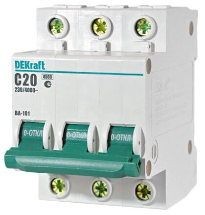 Автомат 3P 20A (C) 4,5кА BA-101 DEKraft (4) в Солнечный