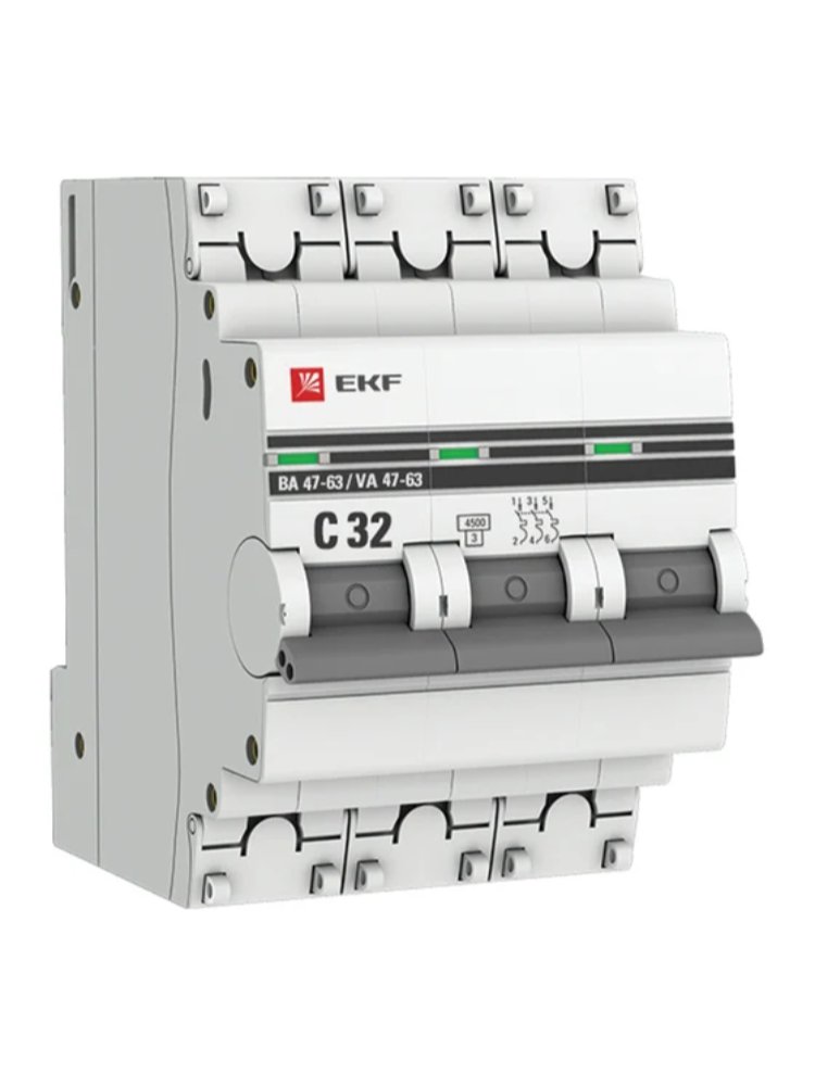 Автоматический выключатель 3P 32A (C) 4,5кА серии BA 47-63 от EKF PROxima представляет собой надежное устройство для защиты электрических цепей от перегрузок и короткого замыкания. Этот трехполюсный автомат рассчитан на номинальный ток 32 А и обладает отключающей способностью 4,5 кА, что обеспечивает эффективную работу в бытовых и промышленных условиях. Корпус выполнен из прочного пластика, устойчивого к механическим повреждениям и высоким температурам. Устройство легко монтируется на DIN-рейку, что упрощает установку в распределительных щитах. Подходит для использования в сетях с напряжением до 400 В.