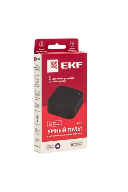 Умный пульт EKF Connect позволяет управлять любыми устройствами, у которых есть свой ИК-пульт, через приложение и через голосовые помощники Алису от Яндекса и Марусю от VK. Примеры устройств, которыми можно управлять - кондиционеры, телевизоры, музыкальные центры. В умный пульт встроены датчики температуры и влажности, что позволяет не только видеть эти параметры в приложении EKF Connect, но и создавать автоматические сценарии, например, чтобы кондиционер включался, когда температура превышает заданное значение, а умная розетка с увлажнителем включалась, когда влажность становится слишком низкой.