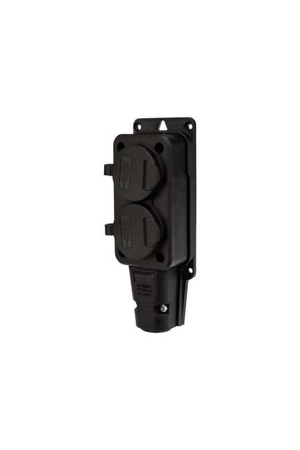 Надёжная и герметичная розетка с двумя гнёздами и заземлением — отличное решение для эксплуатации на строительных площадках, в мастерских, гаражах и на открытом воздухе. Уровень защиты IP54 гарантирует устойчивость к пыли и влаге, а корпус из эластичного каучука с заглушкой препятствует попаданю мусора и брызг, обеспечивая долговечность и безопасную работу даже в сложных условиях.