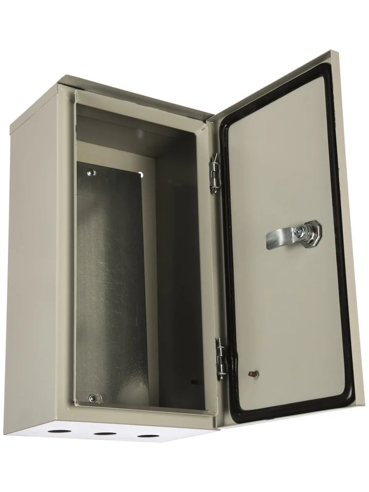 Металлический корпус с монтажной панелью 400×220×155 мм изготовлен из высококачественной стали толщиной 1,2 мм, с порошковым антикоррозийным покрытием. Обеспечивает надежную защиту электрооборудования от пыли и влаги, степень защиты IP31. Оснащён удобной съёмной дверцей на петлях с замком и заземляющей клеммой; обеспечивает простоту монтажа оборудования. Подходит для установки автоматических выключателей, клеммных колодок и другого аппаратного обеспечения.