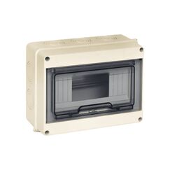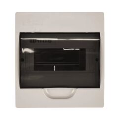 8-модульный пластиковый щиток с прозрачной дверцей, IP41, для дома и офиса, поверхностный монтаж, компактный размер, удобный доступ.